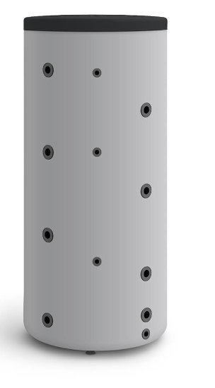 Zbiornik buforowy akumuluje ciepło wytworzone przez różne urządzenia grzewcze. Gorąca woda zgromadzona w zbiorniku wykorzystywana jest później do zasilania układu c.o.  Zbiornik buforowy bez wężownicy pozwala ograniczyć częstotliwość załączania kotła c.o., lub pompy ciepła i utrzymać stabilną temperaturę w instalacji. Pełni jednocześnie funkcję tzw. sprzęgła w instalacji i zabezpiecza układ przed przegrzaniem. Stanowi niezbędny element każdego układu centralnego ogrzewania. Przeznaczony jest do  zwiększania wydajności i trwałości układów c.o. Umożliwia jednoczesne zasilanie budynku urządzeniami, które pracują w otwartym i zamkniętym układzie zasilania. Może być zasilany z kilku źródeł ciepła jednocześnie, w tym kotła c.o., kominka lub pompy ciepła.