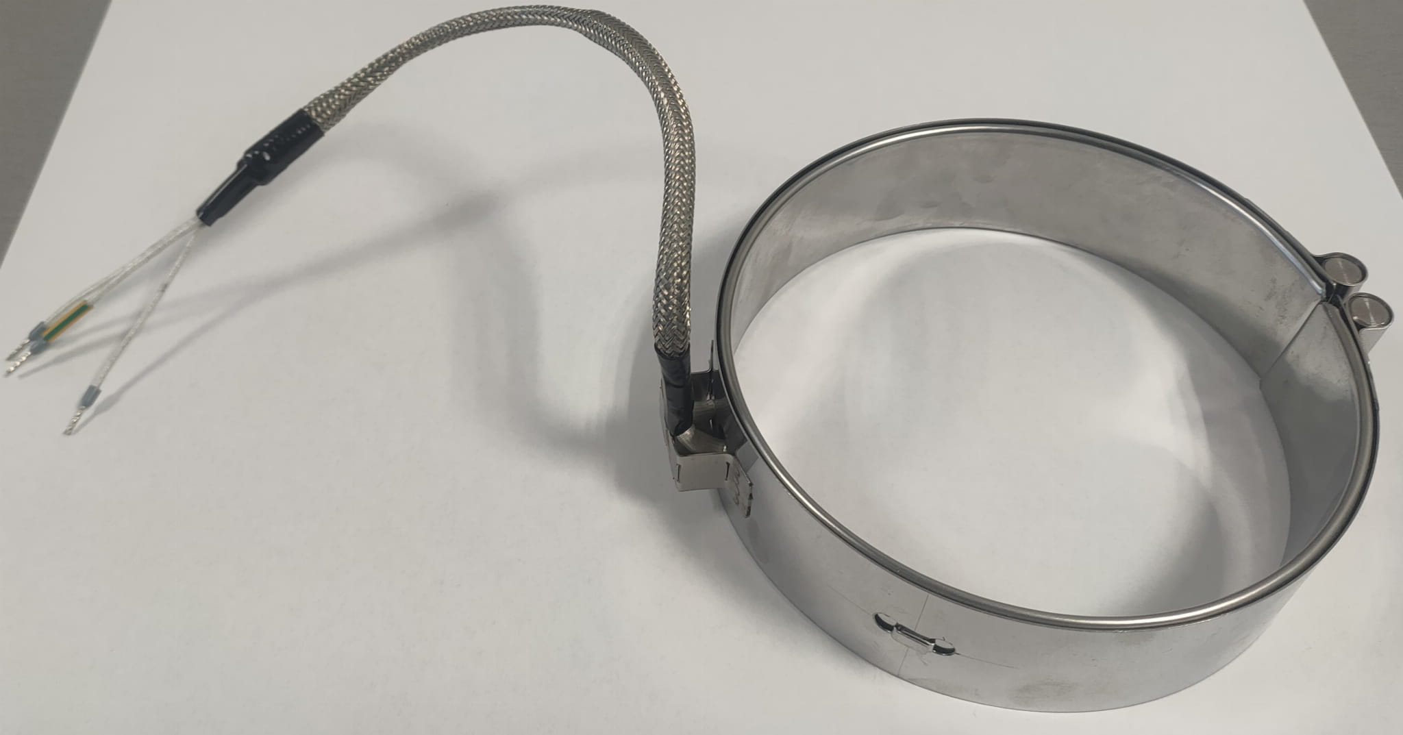 Grzałka mikanitowa opaskowa fi150x40, 800W 230V, Przewód 300mm w oplocie stalowym